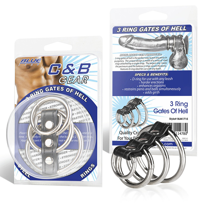 Хомут, состоящий из трех стальных колец разного диаметра и D-образного маленького колечка. Кольцо служит вспомогательным инструментом для эротических игр, который можно использовать для привязи. Данный хомут способствует увеличению пульсации и притока крови к пенису а также его набуханию. Наибольшее кольцо надевается на основание пениса и также фиксирует мошонку, два кольца поменьше фиксируются на самом пенисе. Диаметр колец 5 см, 4 см и 3,2 см. Кольца скреплены ремешком из искусственной кожи с металлическими клёпками. Упаковка: Блистер.