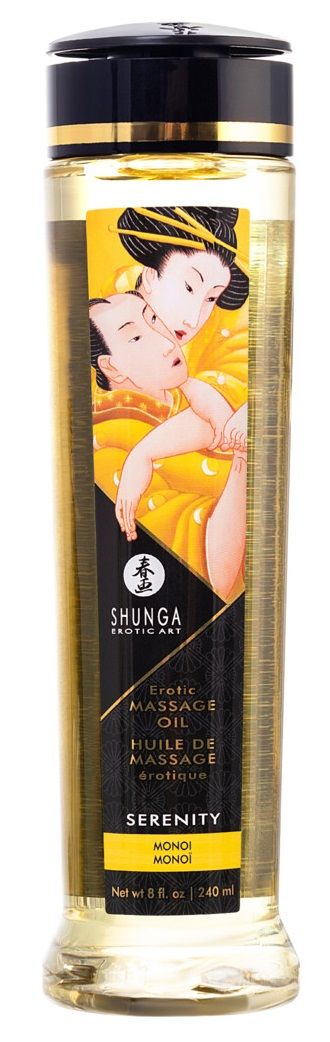 Массажное масло с ароматом моной Serenity. 100% натуральные масла холодного отжима, с витамином Е (антиоксидант), без жирных остатков, не забивает поры, нет минерального или животного масла. Мягкость и шелковистость этого масла с приятным скользящим эффектом на коже вызывает ощущение полного восторга. Сексуальное желание нарастает и вы готовы к любви. Получите взаимное удовольствие от чувственного эротического массажа с использованием нашей эксклюзивной смеси масел холодного отжима, тщательно отобранных за свои стимулирующие и придающие энергию свойства. Масло легко скользит по коже, не оставляя жирных ощущений, в то время как различные экзотические ароматы поднимут ваши чувства до вершин возбуждения. Идеально подходит для того, чтобы насладиться расслабляющим массажем или сделать его, совместив с обволакивающими обольстительными ласками. Это на 100 % натуральное масло с упоительным ароматом, легко скользит по коже, не оставляя жирной пленки. Запах массажному маслу придают эфирные масла и отдушки, что в отличие от большей части другой продукции SHUNGA, ароматизированной вкусовыми добавками, делает его несъедобным.